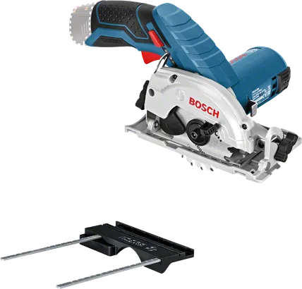 This is a compact, cordless circular saw for cuts up to 26.5 mm. Its design is perfect for easy handling and convenient sawing at any place. The cordless circular saw can be easily controlled thanks to its small handle circumference and its low weight of only 1.4 kg. The GKS 12V-26 Professional is (with an adapter) compatible with the Bosch guide rail system for perfectly straight cuts.
