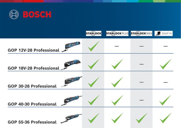 This tool is intended for furniture cutouts and boat renovations as well as pipe and nail cuttings. It can be used in wood, plastic, and metal. It is compatible with the Starlock and StarlockPlus systems. Compatible with the Bosch Professional 18V System and with the multi-brand battery alliance AMPShare.